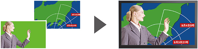 さらに子画面を挿入する「ピクチャーインピクチャー」や映像を合成する「クロマキー」、色の抽出といった「映像エフェクト」、映像を黒や白に切り替えていく「アウトプットフェード」など、多彩な演出を実現しています。